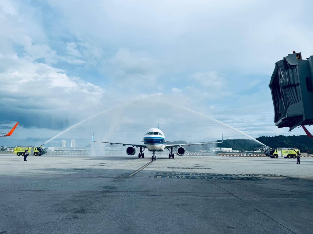 The newly added third daily flight arrived at Penang International Airport at 6pm yesterday, receiving a ceremonial water salute. The welcoming event was attended by Penang Global Tourism CEO Ooi Chok Yan and Ms Jenny Fang, General Manager of China Southern Airlines’ Penang Office, symbolising the strong partnership between Penang and one of China’s largest carriers.